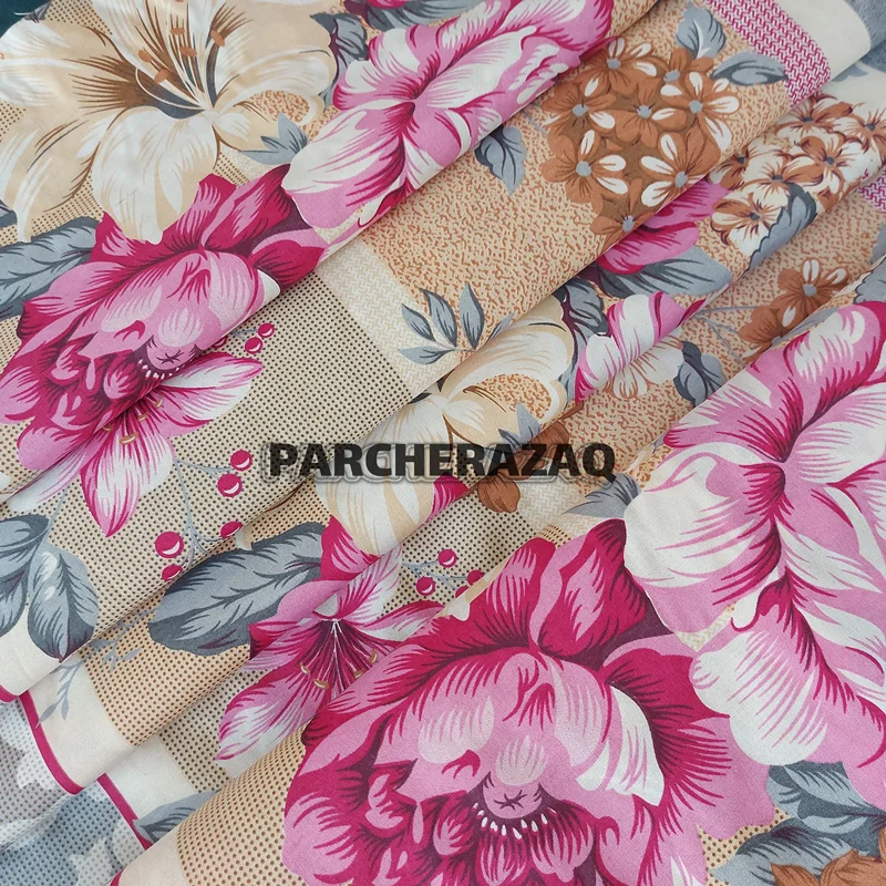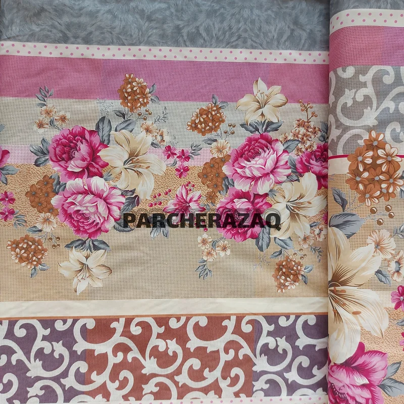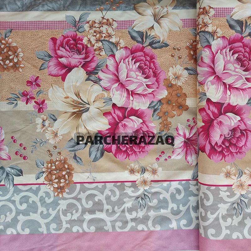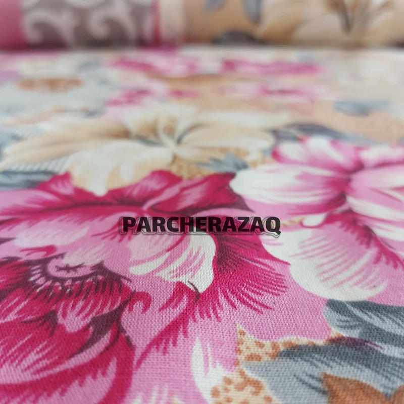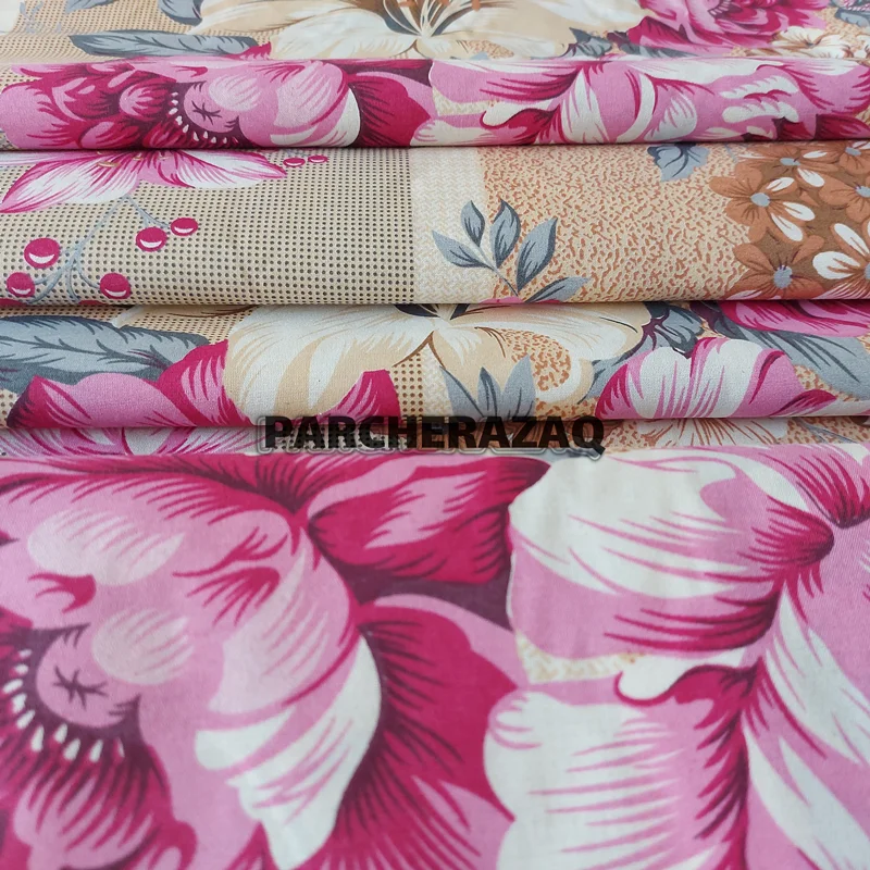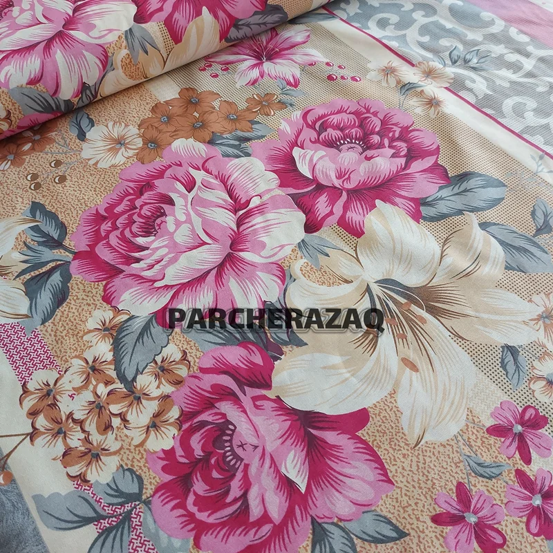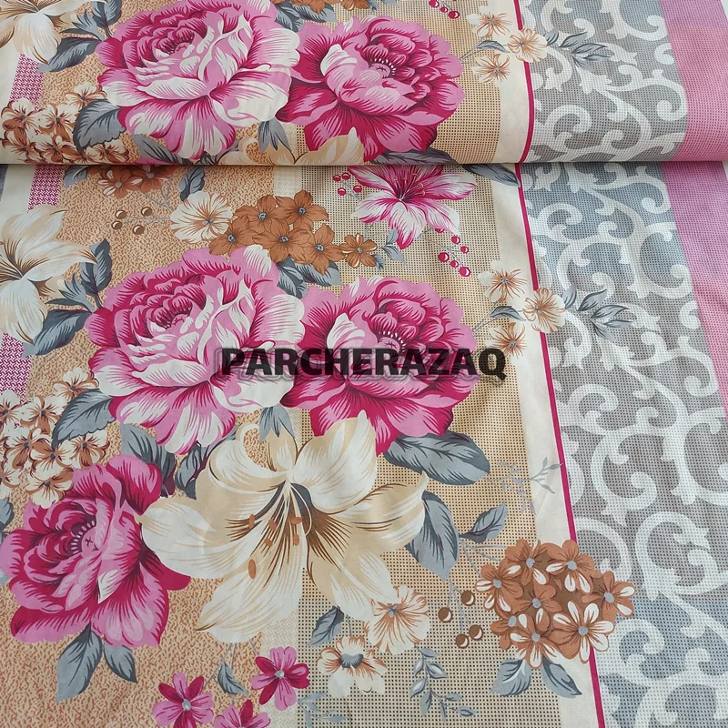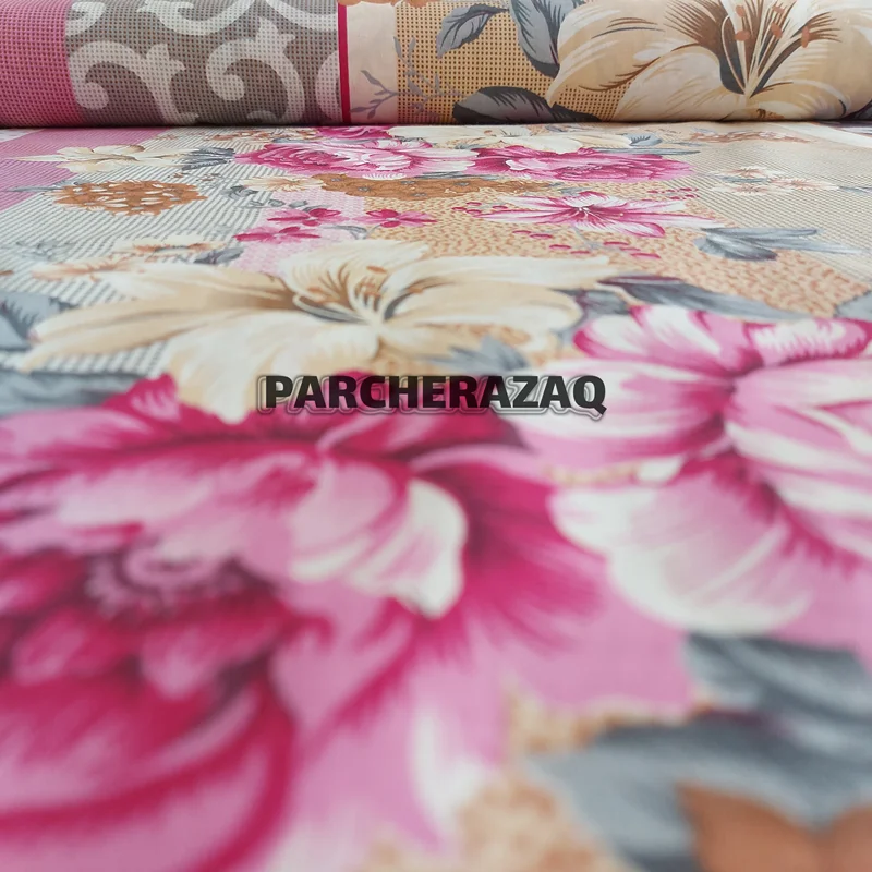 پارچه ملحفه ای دو رو گل ترنج صورتی عرض دو متر