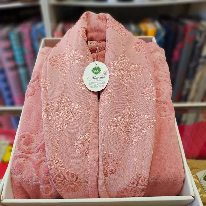 از دیر باز حوله های تبریز به دلیل کیفیت و مرغوبیت بالا زبان زد و محبوب بوده اند. به علاوه کیفیت بالای این حوله ها آن ها را در زمره حوله های صادراتی قرار می دهد. حوله علاءالدین نیز از حوله های تبریز است که کیفیت و ماندگاری آن مشهور و زبان زد است. این حوله جزو حوله های صادراتی است. حوله پالتویی علاءالدین دارای تراکم پرز آبگیر بالا است که منجر به آبگیری بالا و فوق العاده حوله می شود.در این حوله پرزدهی و رنگ پس دادن مشاهده نمی شود. ضخامت حوله بالا و در دسته حوله های سنگین و با کیفیت دسته بندی میشود. این حوله در دو سایز ۱۲۵(لارج) و ۱۳۵ (ایکس لارج) به فروش میرسد.برای تطبیق سایز خود با حوله علاوه بر اندازه گیری سر شانه تا زیر زانو خود، به جدول سایز بندی در بخش مشخصات مراجعه کنید، همچنین میتوانید با تماس با شماره ی پشتیبانی 09921696399 در این زمینه راهنمایی های لازم را دریافت کنید.در ضمن مشاهده فیلم بررسی کیفیت حوله نیز برای شناخت بیشتر حوله پیشنهاد می شود.حوله دارای کلاه و کمربند سر هم است.