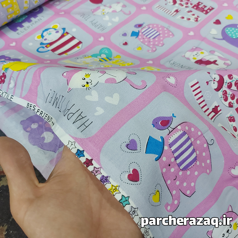 نساجی ریسمان یکی دیگر از نساجی های شهر زیبای اصفهان هست.پارچه ملحفه کودک حیوانات صورتی یکی از طرح های زیبا نساجی ریسمان می باشد.جنس این پارچه تترون است و آب روی و چروکیدگی در آن مشاهده نمیشود و جزو ملحفه های رنگ ثابت طبقه بندی می شود. درصد نخ این پارچه ملحفه ای 60 درصد است. کیفیت آن مرغوب است. برای ملحفه تشک، روبالشی، لحاف، وسایل سیسمونی و پرده اتاق کودک مناسب است. عرض این پارچه 2 متر می باشد. در چهار رنگ طوسی، کرم، صورتی و سبز آبی قابل تهیه می باشد. ضخامت پارچه متوسط است. این پارچه را به صورت متری و طاقه ای میتوانید در پارچه سرای رزاق تهیه کنید.