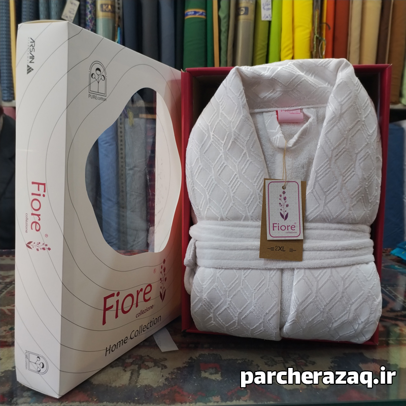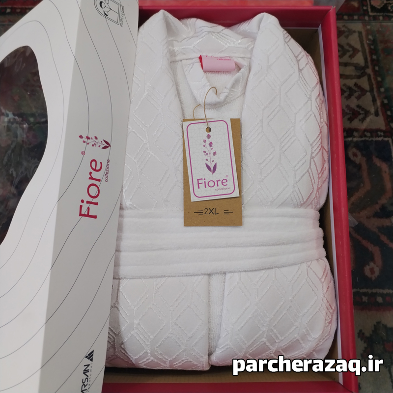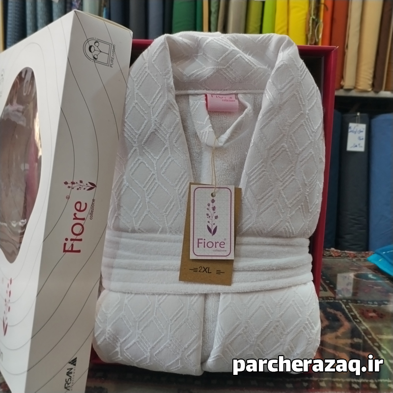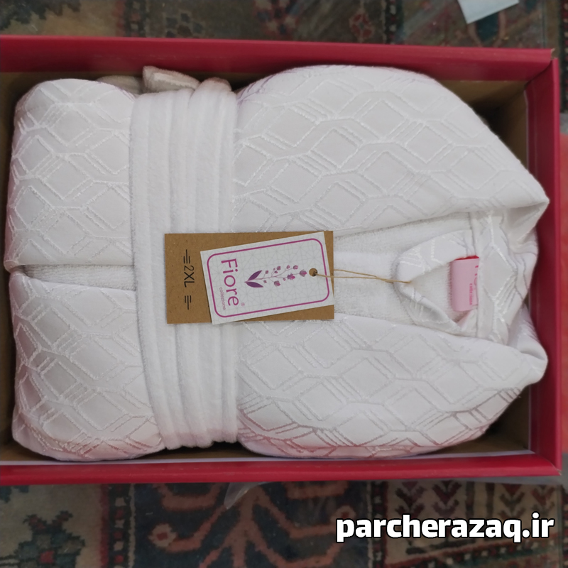 حوله تن پوش XXL فیوره تبریز سفید، زیر شاخه شرکت تولید حوله معتبر آرسن Arsan است. این حوله به صورت VIP تولید شده است. یعنی از نظر کیفی بالا تر است. نکته چشم گیر حوله ضخامت بالا و تراکم بافت بالای آن است. علت استفاده از نخ رینگ در بافت حوله است. نخ رینگ، نخی لطیف است که به صورت حلقه شده بافت شده است و تراکم و ماندگاری حوله را افزایش می دهد. حوله تن پوش فیوره تبریز مخمل است. یقه ابریشم دوزی زیبایی دارد. هر دو طرف مخمل و آب گیرحوله، متراکم و ضخیم هستند.این حوله آب گیری بالایی دارد. درجه ی کیفی آن اعلا و صادراتی می باشد. سایز آن 145 یا دو ایکس لارج (XXL) است. برای افراد پلاس سایز و بسیار قد بلند مناسب است. زیرا حوله بسیار بزرگ است و قد بلندی دارد. رنگ آن ثابت می باشد و پرز دهی ندارد. حوله دارای کلاه متصل، کمربند و جیب می باشد. عکس های موجود ژورنالی نمی باشد و ضخامت و آب گیری حوله تن پوش را میتوانید در عکس ها و فیلم مشاهده کنید.برای تطابق سایز بندی به جدول سایز بندی در بخش مشخصات مراجعه کنید همچنین میتوانید به کارشناس با شماره 09223990518 تماس بگیرید و از مناسب بودن اندازه اطمینان یابید.