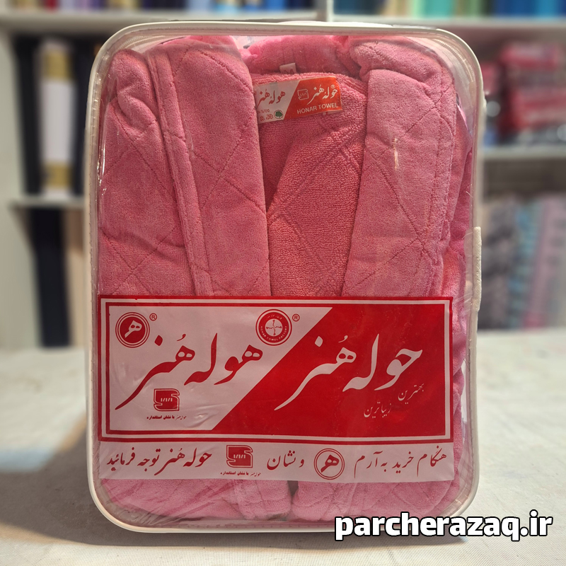 یکی از معروف ترین و با کیفیت ترین حوله های تن پوش ایرانی، حوله تن پوش هنر می باشد. این حوله دارای پرز های بلند آب گیر، بافت ضخیم و متراکم است. حوله تن پوش هنر جزو حوله های تن پوش سنگین وزن تقسیم بندی می گردد. رنگ حوله ثابت است. پرز دهی ندارد. عمر حوله بالا و ماندگاری چندین ساله دارد. حوله تن پوش هنر دارای کلاه و کمربند است. روی حوله از جنس مخمل لطیف است و قسمت داخل حوله بافت آب گیر دارد. هر دو قسمت درونی و بیرونی حوله آب گیری بالایی دارند. حوله تن پوش هنر در سایز های اسمال،مدیوم، لارج و ایکس لارج به فروش می رسد. قیمت حوله با توجه به عمر طولانی و کیفیت بالای آن بسیار به صرفه است. سرای پارچه و حوله رزاق حوله تن پوش هنر را با کیفیت و قیمت مناسب در رنگ بندی متنوع و گوناگون ارائه می دهد. این حوله دارای رده ی کیفی اعلا پلاس و صادراتی می باشد.برای تطبیق سایز خود با حوله علاوه بر اندازه گیری سرشانه تا زیر زانو خود، به جدول سایز بندی در بخش مشخصات مراجعه کنید، همچنین میتوانید با تماس با شماره ی پشتیبانی تماس حاصل فرمایید. حوله تن پوش هنر هم به صورت تک و هم عمده به فروش میرسد.