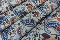 پارچه ی زیر سفره ای یا روفرشی از نظر تولید و استفاده قدمت طولانی دارد.جنس این پارچه ها از پشم بوده و به دو نوع پلاس و جاجیم تقسیم می شوند. تفاوت پلاس و جاجیم در این است که پلاس ظریف تر، نازکتر و با مقاومت کمتری نسبت به جاجیم است. این پارچه به دو نوع دستباف(سنتی) و مدرن(صنعتی) نیز تقسیم میشود که پارچه زیر سفره ای موجود، از نوع صنعتی و با ماشینبافت صنعتی تولید شده است که البته طرفداران بیشتری نسبت به نوع سنتی آن دارد. پارچه های صنعتی جاجیم وپلاس در مقایسه با نوع سنتی مزایایی دارند که از مزایای آن میتوان به ماندگاری و کارکرد بالاتر اشاره کرد.ویژگی های کالای در حال فروش چه گونه است؟ محصول موجود در سرای پارچه و حوله رزاق، جاجیم طرح بته جغه عرض 2 متر 8 کیلویی مرغوب است و به صورت متری و طاقه ای فروش میرود. الیاف این پارچه از ژاکارد است که در دسته ی الیاف مصنوعی طبقه بندی میشود.ژاکارد مشابه پشم است و همین عامل سبب میشود که جاجیم های صنعتی شباهت زیادی به جاجیم سنتی دستباف پشمی داشته باشد. به دلیل بدون پرز بودن جاجیم، روی دیگر این پارچه نیز قابل استفاده است. پارچه جاجیم نیاز به سردوز دارد.
