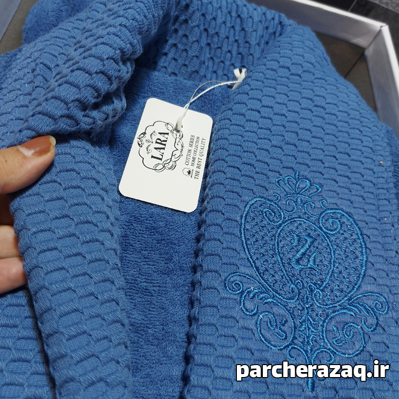 حوله تن پوش یقه گلدوزی لارا سایز 125 آبی درباری