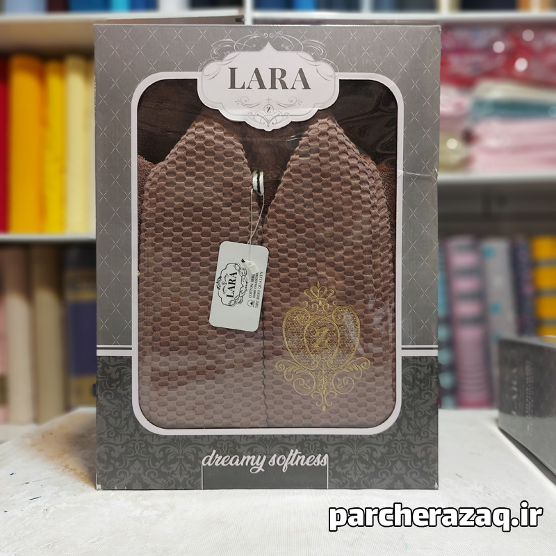 حوله تن پوش یقه گلدوزی لارا سایز 125 قهوه ای