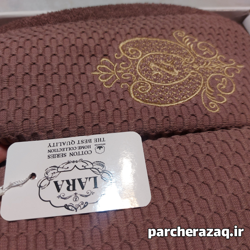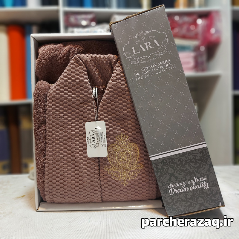 یکی از زیباترین حوله های موجود در فروشگاه سرای پارچه و حوله رزاق، حوله ی تن پوش لارا تبریز می باشد. این حوله در عین زیبایی، کیفیت بالایی نیز دارد. حوله تن پوش لارا تبریز دو رو آب گیر است. یعنی هر دو طرف حوله بافت آب گیر دارد و بافت مخمل در آن به کار نرفته است. در نتیجه احتمال پرز دهی در حوله نزدیک به صفر است. آب گیری بالای این حوله از ویژگی های ناب آن است. حوله ی لارا، تراکم بافت بالایی دارد. درجه ی کیفی آن اعلا می باشد. اگر میخواهید هدیه ای شیک، لوکس و ماندگار بدهید و یا حتی برای تهیه ی سرویس جهیزیه نیاز به حوله دارید پیشنهاد اول سرای پارچه و حوله رزاق حوله های تن پوش لارا به دلیل زیبایی و کیفیت بالای آن می باشد. سایز آن 125 یا لارج است. رنگ آن ثابت می باشد و پرز دهی ندارد. حوله دارای کلاه متصل، کمربند و جیب می باشد. عکس های موجود ژورنالی نمی باشد و ضخامت و آب گیری حوله تن پوش را میتوانید در عکس ها و فیلم مشاهده کنید.برای تطابق سایز بندی به جدول سایز بندی در بخش مشخصات مراجعه کنید همچنین میتوانید به کارشناس با شماره 09223990518 تماس بگیرید و از مناسب بودن اندازه اطمینان یابید.