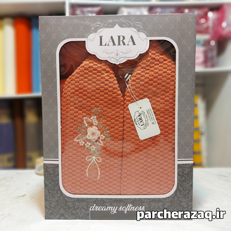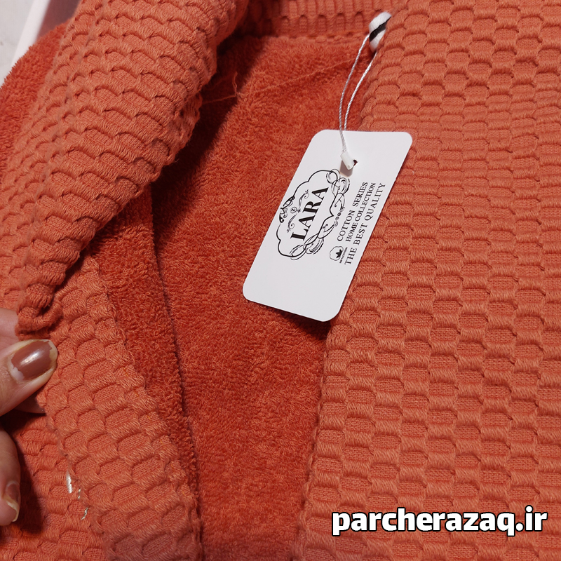 یکی از زیباترین حوله های موجود در فروشگاه سرای پارچه و حوله رزاق، حوله ی تن پوش لارا تبریز می باشد. این حوله در عین زیبایی، کیفیت بالایی نیز دارد. حوله تن پوش لارا تبریز دو رو آب گیر است. یعنی هر دو طرف حوله بافت آب گیر دارد و بافت مخمل در آن به کار نرفته است. در نتیجه احتمال پرز دهی در حوله نزدیک به صفر است. آب گیری بالای این حوله از ویژگی های ناب آن است. حوله ی لارا، تراکم بافت بالایی دارد. درجه ی کیفی آن اعلا می باشد. اگر میخواهید هدیه ای شیک، لوکس و ماندگار بدهید و یا حتی برای تهیه ی سرویس جهیزیه نیاز به حوله دارید پیشنهاد اول سرای پارچه و حوله رزاق حوله های تن پوش لارا به دلیل زیبایی و کیفیت بالای آن می باشد. سایز آن 125 یا لارج است. رنگ آن ثابت می باشد و پرز دهی ندارد. حوله دارای کلاه متصل، کمربند و جیب می باشد. عکس های موجود ژورنالی نمی باشد و ضخامت و آب گیری حوله تن پوش را میتوانید در عکس ها و فیلم مشاهده کنید.برای تطابق سایز بندی به جدول سایز بندی در بخش مشخصات مراجعه کنید همچنین میتوانید به کارشناس با شماره 09223990518 تماس بگیرید و از مناسب بودن اندازه اطمینان یابید.