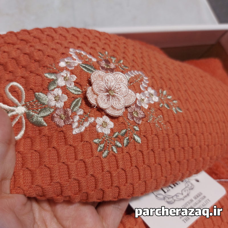 حوله تن پوش یقه گلدوزی لارا سایز 125 آجری