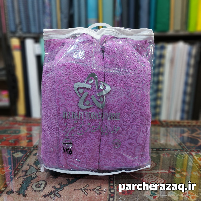 از دیر باز حوله های تبریز به دلیل کیفیت و مرغوبیت بالا زبان زد و محبوب بوده اند. به علاوه کیفیت بالای این حوله ها آن ها را در زمره حوله های صادراتی قرار می دهد. حوله ریزبافت نیز از حوله های تبریز است که کیفیت و ماندگاری خوبی دارد و در مقایسه با سایر حوله های تبریز در رده کیفی اعلا قرار میگیرد. محصول در حال فروش حوله پالتویی ریزبافت یقه طرح دار تبریز است. حوله تن پوش ریزبافت تبریز یاسی، دارای تراکم پرز آبگیر بالا است و آب گیری بسیار بالایی دارد. این حوله دو رو آب گیر است. یقه ابریشم بافت دارد. در این حوله پرزدهی و رنگ پس دادن مشاهده نمی شود. ضخامت حوله بالا و در دسته حوله های سنگین و با کیفیت دسته بندی میشود. حوله دارای کلاه و کمربند سر هم است. سایز حوله لارج یا 125 است. سایز بندی دقیق را در جدول مشخصات محصول میتوانید ملاحظه کنید. ضخامت حوله، آب گیری بالای حوله تن پوش همگی در عکس و فیلم های محصول قابل مشاهده است. پس حتما فیلم برررسی محصول حوله را ملاحظه کنید. اگر در انتخاب سایز مناسب یا در مورد کیفیت حوله سوالی داشتید حتما با کارشناسان ما تماس بگیرید.شماره کارشناس: 09223990518