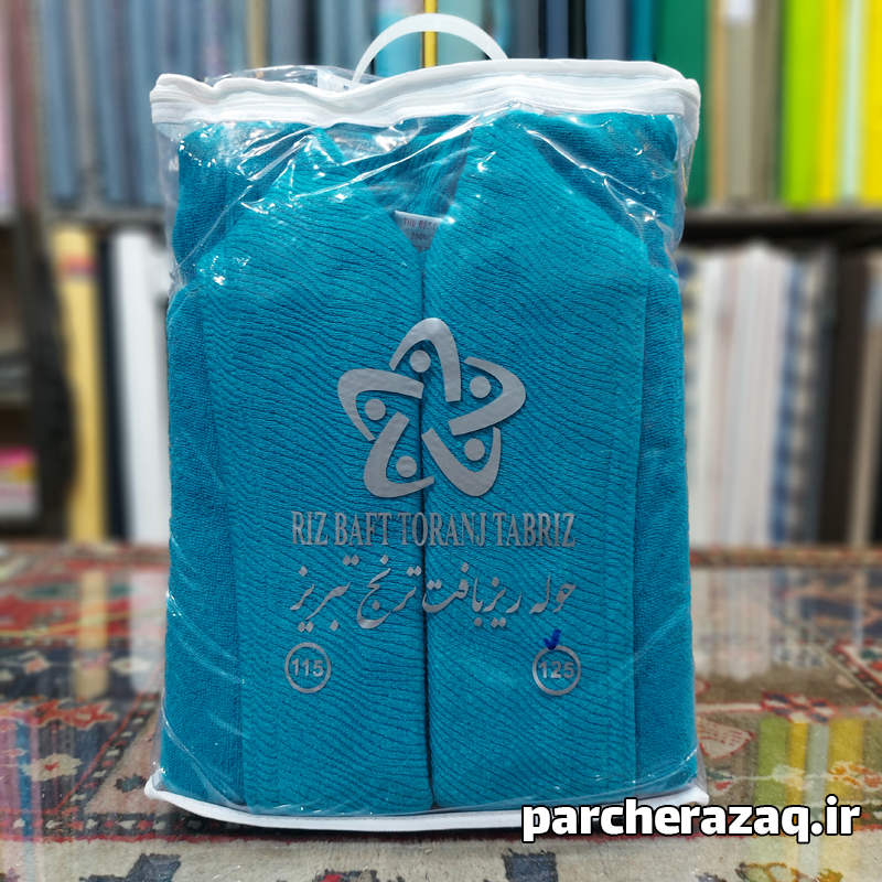 از دیر باز حوله های تبریز به دلیل کیفیت و مرغوبیت بالا زبان زد و محبوب بوده اند. به علاوه کیفیت بالای این حوله ها آن ها را در زمره حوله های صادراتی قرار می دهد. حوله ریزبافت نیز از حوله های تبریز است که کیفیت و ماندگاری خوبی دارد و در مقایسه با سایر حوله های تبریز در رده کیفی اعلا قرار میگیرد. محصول در حال فروش حوله پالتویی ریزبافت یقه طرح دار تبریز است. حوله تن پوش ریزبافت تبریز پترول، دارای تراکم پرز آبگیر بالا است و آب گیری بسیار بالایی دارد. این حوله دو رو آب گیر است. یقه ابریشم بافت دارد. در این حوله پرزدهی و رنگ پس دادن مشاهده نمی شود. ضخامت حوله بالا و در دسته حوله های سنگین و با کیفیت دسته بندی میشود. حوله دارای کلاه و کمربند سر هم است. سایز حوله لارج یا 125 است. سایز بندی دقیق را در جدول مشخصات محصول میتوانید ملاحظه کنید. ضخامت حوله، آب گیری بالای حوله تن پوش همگی در عکس و فیلم های محصول قابل مشاهده است. پس حتما فیلم برررسی محصول حوله را ملاحظه کنید. اگر در انتخاب سایز مناسب یا در مورد کیفیت حوله سوالی داشتید حتما با کارشناسان ما تماس بگیرید.شماره کارشناس: 09223990518