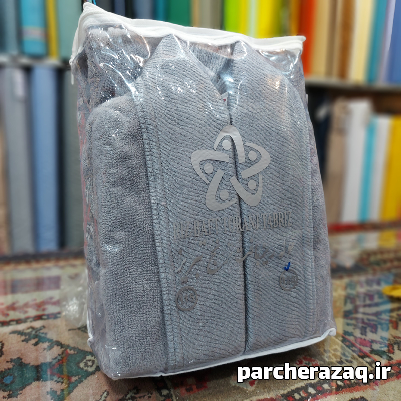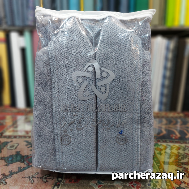 از دیر باز حوله های تبریز به دلیل کیفیت و مرغوبیت بالا زبان زد و محبوب بوده اند. به علاوه کیفیت بالای این حوله ها آن ها را در زمره حوله های صادراتی قرار می دهد. حوله ریزبافت نیز از حوله های تبریز است که کیفیت و ماندگاری خوبی دارد و در مقایسه با سایر حوله های تبریز در رده کیفی اعلا قرار میگیرد. محصول در حال فروش حوله پالتویی ریزبافت یقه طرح دار تبریز است. حوله تن پوش ریزبافت تبریز نقره ای، دارای تراکم پرز آبگیر بالا است و آب گیری بسیار بالایی دارد. این حوله دو رو آب گیر است. یقه ابریشم بافت دارد. در این حوله پرزدهی و رنگ پس دادن مشاهده نمی شود. ضخامت حوله بالا و در دسته حوله های سنگین و با کیفیت دسته بندی میشود. حوله دارای کلاه و کمربند سر هم است. سایز حوله لارج یا 125 است. سایز بندی دقیق را در جدول مشخصات محصول میتوانید ملاحظه کنید. ضخامت حوله، آب گیری بالای حوله تن پوش همگی در عکس و فیلم های محصول قابل مشاهده است. پس حتما فیلم برررسی محصول حوله را ملاحظه کنید. اگر در انتخاب سایز مناسب یا در مورد کیفیت حوله سوالی داشتید حتما با کارشناسان ما تماس بگیرید.شماره کارشناس: 09223990518